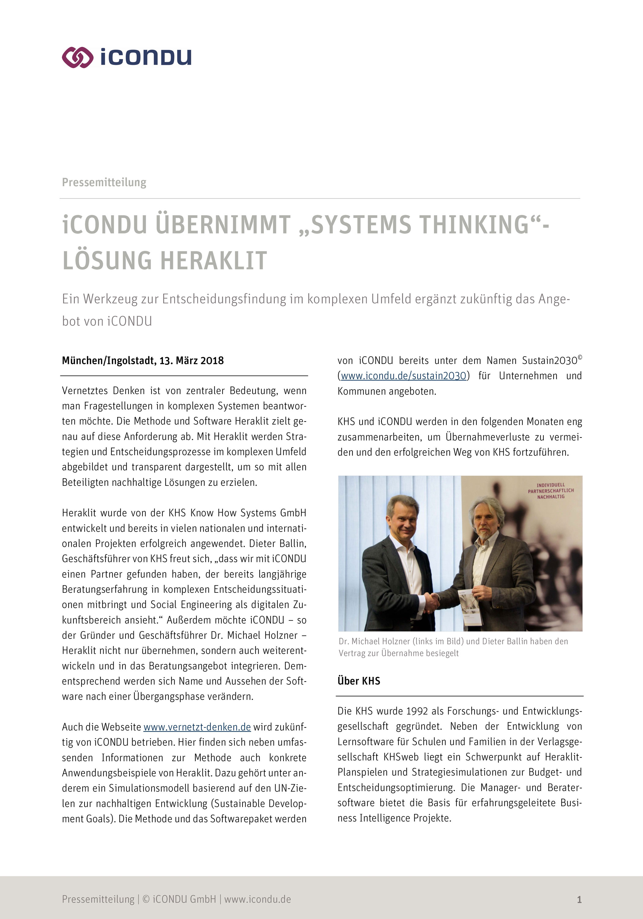iCONDU übernimmt „Systems Thinking“-Lösung HERAKLIT