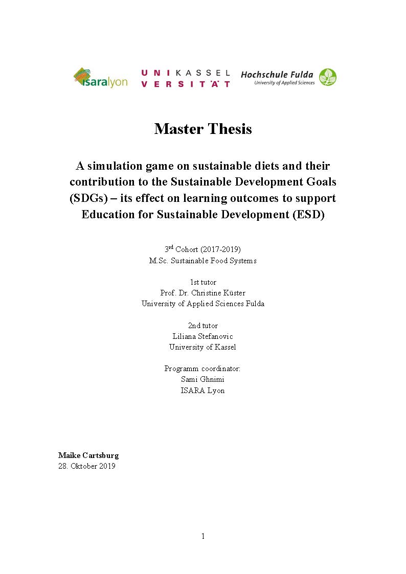 Masterarbeit: „Planspiel zur nachhaltigen Ernährung“