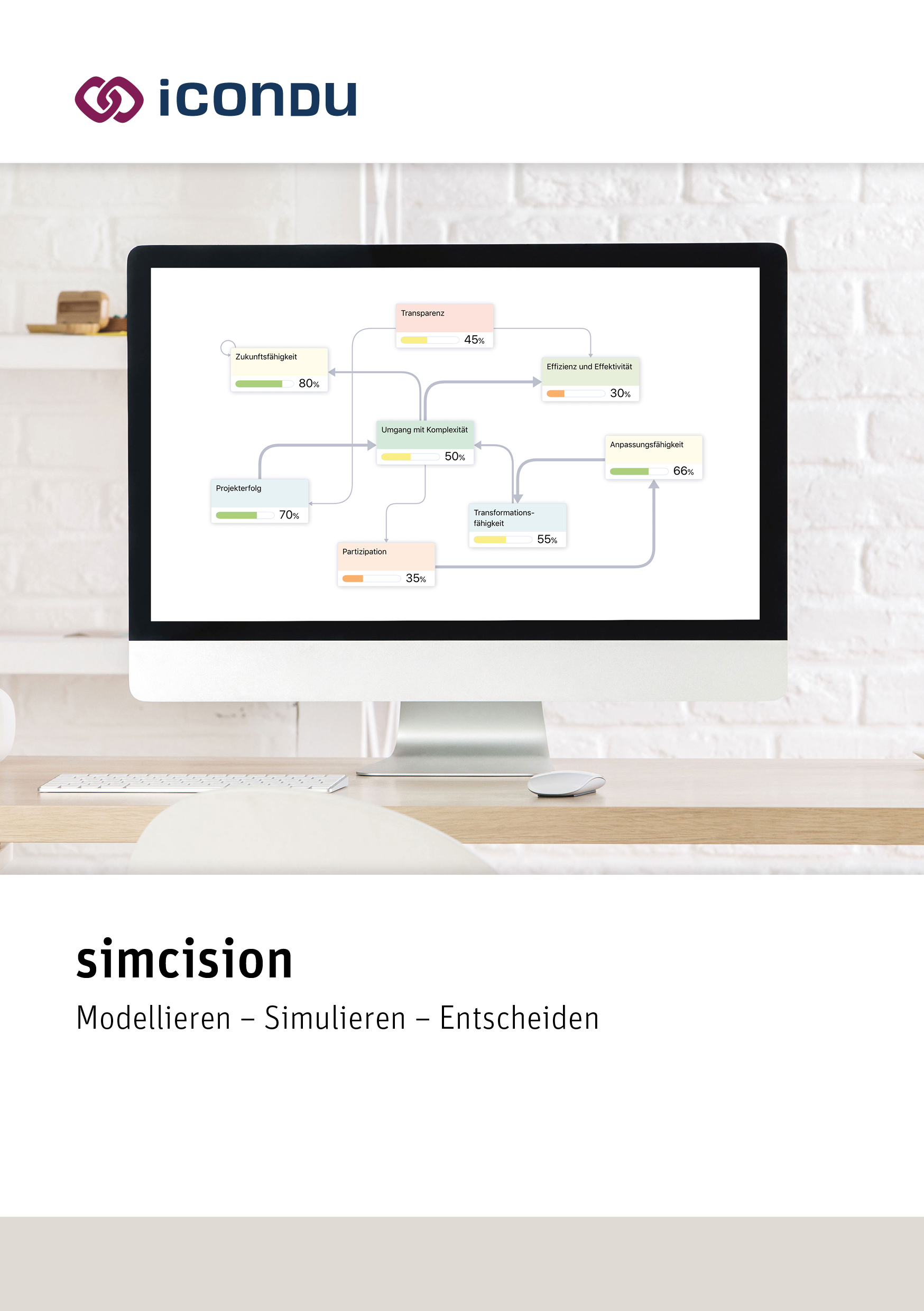 Für die erfolgreiche Gestaltung komplexer Produkte oder Projekte reicht es nicht aus, Arbeitsinhalte zu definieren und Aufgaben zu verteilen. Ohne gemeinsames Verständnis der Beteiligten für die bestimmenden Erfolgsfaktoren und deren Abhängigkeiten kann das angestrebte Er­gebnis in der vorgesehenen Zeit und der geplanten Qualität nicht erreicht werden. Der Umgang mit komplexen Themen erfordert ein gemeinsames Bild der Ziele und ihrer Zusammenhänge, um unser Handeln und Maßnahmen daran ausrichten, priorisieren und bewerten zu können. Dieses Zielsystem muss von allen Stakeholdern verstanden und mitgetragen werden. simcision unterstützt als Methode des Systemdenkens eine co-kreative Arbeitsweise und ermöglicht die Entwicklung eines gemeinsamen Zielbildes als Entscheidungs- und Bewertungsgrundlage, das verständlich kommuniziert werden kann.