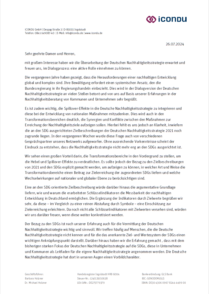 Stellungnahme zum neuen Entwurf der deutschen Nachhaltigkeitsstrategie 2024
